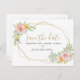 Save the Date Postkarte mit wunderschönen Blume in Rosa und Gold. Finden Sie passende Artikel in unserem Shop oder kontaktieren Sie uns.