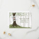 Un mariage à l'extérieur sauvez la date avec une illustration d'un arbre dans la forêt avec des feuilles verts et des racines exposées avec une bannière enroulée autour du tronc pour les noms du couple.