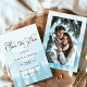 Annoncez votre mariage avec ces photos de mariage hivernal de Forêt neigeuse Enregistrer les cartes de dates. Doté d'un arrière - plan romantique de pinède enneigée dans des tons bleus poussiéreux et doux, le design comprend de l'espace pour présenter votre photo fiançailles préférée. Parfait pour les mariages de montagne, de forêt ou de montagne.