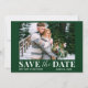 Modern Trendy Save The Date Carte photo avec script de bloc et combinaison de script de calligraphie. Forest Green.