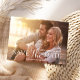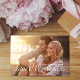 Dieses Design verfügt über eine Save the Date Fotokarte, die perfekt für Hochzeiten geeignet ist. Das elegante, moderne minimalistische, einfache Typografie-Design, ein klassisches, kalligraphisches Skript, mit einem scannbaren QR-Code, perfekt für Paare, die gerne Foto haben.