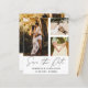 Elegant und einfach rettete unsere Datumsanzeige. Diese Vorlage bietet Platz für 3 Ihrer Lieblings-Fotos in Weiß mit cooler handgeschriebener Kalligraphie in Gold. Einfach mit Ihren eigenen, einzigartigen Details bearbeiten.