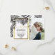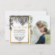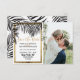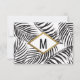 Elégante, chic et moderne plage tropicale imitation contour d'or imprimé et feuilles fronde de palmier noir sur blanc avec fausse impression typographie de séquence d'or, carte de mariage Save the Date. Ce design classique et sophistiqué est parfait pour le couple marié branché et élégant. Personnalisez avec votre propre message sur l'avant ainsi qu'avec un premier monogramme customisé sur l'arrière. Toute la conception d'impression photo.