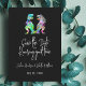 The sleek black background paired with crisp white modern typography and elegant script accents adds a sophisticated contrast that makes the bright watercolor dinosaurs pop. A perfect blend of fun and style, this design celebrates love with a prehistoric twist