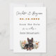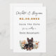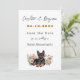 Bei Hochzeiten speichern Sie die Terminankündigungen mit dem deutschen Schäferhundedesign. Der Welpe liegt unter den Wildblumen im Design am unteren Ende des Weißpapiers. Schwarzer Text wird in Skripten und gedruckten Schriftart verwendet, mit Ausnahme des rostorangefarbenen Datums.