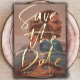 Moderne "Save the Date" Ankündigung mit vollbluttem Foto vorne mit Terrakotta-transluzenter Overlay und echter Folientypografie. Passen Sie sich mit Ihren eigenen, einzigartigen Informationen an.
