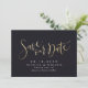 Livré à la main enregistrer le script de date en fausse feuille d'or et couleur noire, élégant et élégant, grand moderne simple personnalisé enregistrer les cartes de date. Voir toutes les pièces correspondantes dans la collection.