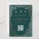 Forest Green Gold Celestial Enregistrer la carte de date avec QR Code —Cette invitation n'est pas une véritable feuille d'or - il s'agit d'un design numérique pour ceux qui préfèrent les téléchargements et l'impression sans relief. Cependant, le même article est également disponible dans notre collection avec de la feuille d'or réelle pour une finition brillante et gaufrée. Annoncez votre mariage dans le style céleste avec cette élégante carte Save the Date. Doté d'un arrière - plan vert de forêt profond avec lune dorée, étoiles et détails feutrés, il allie charme intemporel et commodité moderne. Le dos comprend un code QR personnalisable qui se connecte directement à votre site mariage, ce qui facilite l'accès à tous les détails. Conception imprimée, pas de véritable feuille.