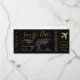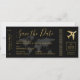 Boarding Pass Flugzeug Ticket Save the Date Einladungskarte in kichern und eleganten Schwarz und Gold für eine moderne Hochzeit in Urlaubsort mit einem romantischen Flugzeuglogo und Weltkarte Hintergrund und Platz auf der Rückseite für Reise- und Unterkunftsinformationen für Gäste, die ihre Reise zu planen beginnen, um Ihre Ehe in der Mitte eines Urlaubs zu feiern. Eines der vielen Themen der Reise sparen die Daten und Einladungen, die nach der direkten Zusammenarbeit mit kreativen und abenteuerlichen Paaren entstanden sind, die gemeinsam die Welt bereist haben oder sich während ihrer Arbeit in der Reisebranche kennengelernt haben. Wenden Sie sich direkt über den Zazzle Chat an den Zazzle Designer mit Ideen, wie Sie die Vorlage mit Ihren Hochzeitsdetails personalisieren können.