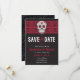 Goth Skull Swirl & Lace Wedding Enregistrer les dates en rouge & noir. Parfait pour tout événement avec un jour de mort (dia de los muertos), calavera, ou thème cool. Coordonner les cartes supplémentaires disponibles dans la boutique mais si elles ne sont pas trouvées ou ont des modifications, veuillez envoyer un courriel à articulosdepapel@gmail.com ou par le lien "Demandez au concepteur". La plupart des modifications ont été effectuées dans les 24 heures.
