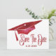 Belle, simple graduation moderne enregistrer la carte de date à envoyer à la famille et amis. Dispose d'un capuchon de graduation à l'aquarelle rouge. Magnifique carte moderne et simple pour enregistrer une date pour un diplôme.