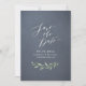 Calligraphie chic moderne sauvez la date avec aquarelle vert feuillage design sur gris fumée arrière - plan, simple et élégant, idéal pour mariage rustique, mariage de printemps et mariage d'été. Voir toutes les pièces correspondantes de la collection