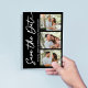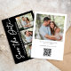 Dieses Design verfügt über eine Save the Date, eine Hochzeitkarte mit modernem minimalistischem Stil, eine 4-Foto-Collage mit Schwarz und Weiß, ein einfaches Typografie-Design mit einzigartigem Kalligrafieschrift und einen scannbaren QR-Code, um Ihre Hochzeitsdetails zu teilen.