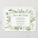 Cette photo blanche hydrangea enregistrer la carte de date est à la fois moderne et fantaisiste. L'avant a une belle verdure d'aquarelle feuilletée et des hydrangées blanches et l'arrière a une photo du couple heureux. Il est parfait pour un mariage de printemps ou d'été et juste pour laisser vos amis et votre famille savoir quand et où vous prévoyez de vous marier. En quelques secondes, vous pouvez voir comment vos cartes ressembleront. Sélectionnez Personnalisez ce Modèle, téléchargez une photo préférée et entrez vos informations pour visualiser vos cartes uniques et magnifiques.