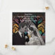 Couple de mariés en papier posé sur un fond d'arbres aux couleurs variées.