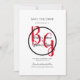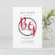 Ce design présente un arrangement élégant mais simple des initiales personnalisées de la mariée et du marié. Les noms des couples sont encerclés d'une bague noire et placés sur les initiales du prénom de la mariée et du marié qui sont affichées en typographie rouge. Ce design rouge, noir et blanc est simple mais élégant dans tous les sens. Le verso affiche un arrière - plan de couleur rouge. Le mélange des couleurs crée un style chic, tendance et sophistiqué. Mariage élégant enregistrer la conception de la carte de date avec des éléments modernes. La configuration simple de la typographie lui donne un style distinct. Des invitations de mariage et d'autres articles de papeterie sont également disponibles.