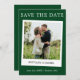 Moderne Simple Rétro Instantané Style Caméra Couple Photo Enregistrer La Date Photo Fiançailles Carte Faire-part - Forest Green