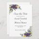 Mariage Enregistrer La Carte Date. Purple Yellow et Green Floral Design avec espace sur le dos pour votre site mariage code QR.