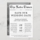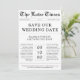 Pour votre mariage rustique d'automne, cette annonce de date de mariage dans un journal apporte des vibrations intemporelles avec des tons de photo dorés chauds, des polices vintage et votre monogramme. Pensez à l'air frais, aux feuilles qui tombent et à une façon élégante de dire : « Nous nous marions ! »