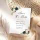 Navy & Blush Pink Save the Date Card. Dieses stilvolle und elegante Bridal Duschbad lädt mit herrlich handgemalten Aquarellen Navy & Blush Pink Floral ein. Finden Sie passende Artikel in der Navy & Blush Pink Floral Collection.