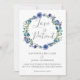 Faites savoir à vos invités que votre mariage a été reporté en raison de circonstances imprévues avec cette belle couronne de fleurs violettes et d'indigo roses d'aquarelle. Changez les cartes de dates pour que votre famille sache pour enregistrer une nouvelle date dans le futur parce que l'amour est patient.