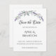 Un design élégant et vintage avec des roses d'ivoire, des eucalyptus et de la lavande peints en aquarelle romantique. Enregistrez les invitations de date.