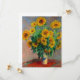 Carte représentant la peinture à l’huile de Claude Monet Bouquet of Sunflowers (1881). Beaux tournesols dans un vase bleu au-dessus d'une table rouge. Un grand cadeau pour les amateurs d'impressionnisme et d'art français.