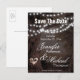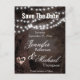 Ein romantisches Aussehen Save the Date kümmert sich um eine Lichterkette und ein Herz mit Initialen in einem Baum.