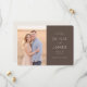 This elegant wedding save the date design features a warm, romantic photo set against a soft, earthy backdrop. The layout combines a tender moment captured in the photograph with sophisticated typography on a rich brown panel, creating an inviting and timeless feel. Perfect for couples looking to announce their special day with grace and charm, this design exudes warmth and love, setting the tone for a memorable celebration. Customizable text areas allow you to personalize your message while maintaining the overall aesthetic appeal.