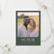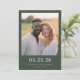 This elegant wedding save the date design features a soft, romantic photo area framed by a soothing green border. The typography is clean and modern, complementing the natural color palette that includes warm earth tones and gentle whites. Perfect for couples looking to capture a serene and intimate moment, this design exudes warmth and sophistication, making it ideal for an outdoor or countryside wedding celebration. Customize with your details to create a personalized keepsake for your special day.