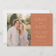 This elegant save the date design features a warm, inviting color palette with soft peach tones that create a romantic and sophisticated atmosphere. The layout is split into two sections, combining a beautiful photo area on one side with clean, modern typography on the other, ensuring both visual appeal and readability. Perfect for couples looking to announce their wedding in style, this design exudes charm and grace, making it an ideal choice for a memorable celebration. Customizable text areas allow you to personalize your message while maintaining the overall aesthetic.