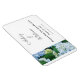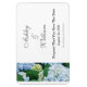 Dieser Save the Date-Magnet wird in einem klassischen formalen Layout in der Farbe Weiß mit schwarzem und grauem Text und Skripttext gezeigt, der die Namen von Braut und Bräutigam hervorhebt und mit blauen Hydrangea-Blume akzentriert ist. Passen Sie diese Hochzeitseinladung an, indem Sie auf die Schaltfläche Anpassen klicken, gehen Sie rechts zu den Textfeldern und ändern Sie den entsprechenden Text zu Ihrem.
