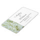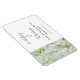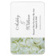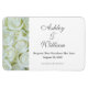 Dieser Save the Date-Magnet wird in einem klassischen Formlayout in der Farbe Weiß mit Schwarz und Grau-Text und Skripttext angezeigt, der die Namen von Braut und Groom hervorhebt und mit einem Foto aus weißer Rose-Blume akzentriert ist. Klicken Sie auf die Schaltfläche, wählen Sie rechts die Textfelder aus und ändern Sie den entsprechenden Text in Ihren Text.