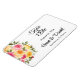 Dieser Magnet Save the Date wird in einem klassischen formalen Layout in der Farbe weiß dargestellt, mit schwarzem Text und Skripttext, der die Namen von Braut und Bräutigam hervorhebt und mit einem Rosenbukett-Kunstdruck akzentriert ist. Klicken Sie auf die Schaltfläche Anpassen, gehen Sie rechts zu den Textfeldern und ändern Sie den entsprechenden Text in Ihren Text. Bild