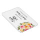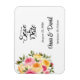 Dieser Magnet Save the Date wird in einem klassischen formalen Layout in der Farbe weiß dargestellt, mit schwarzem Text und Skripttext, der die Namen von Braut und Bräutigam hervorhebt und mit einem Rosenbukett-Kunstdruck akzentriert ist. Klicken Sie auf die Schaltfläche Anpassen, gehen Sie rechts zu den Textfeldern und ändern Sie den entsprechenden Text in Ihren Text. Bild