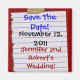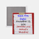 "Save the Date!" in fett-blau mit dem Datum in schwarzem Text auf einer Notiz auf einem Blatt Papier, das auf einen roten Hintergrund geklebt ist. Im Beispieltext steht: "Jennifer und Robert's Wedding!" in rot. Ändern Sie die Textfarben einfach nach Ihrem Geschmack. Klicken Sie auch auf "Anpassen" und dann auf "Bearbeiten" und dann auf "Hintergrund", um den roten Hintergrund zu ändern. Ein lustiger Magnet, der für jeden die perfekte Erinnerung sein wird. Einfach den Text in Ihren eigenen Worten anpassen und diesen besonderen Tag nicht vergessen werden! Ideal für Hochzeiten, Geburtstage, Jubiläen, Duschen, Wiedersehen, besondere Anlass und Save the Date. Vergiss nicht, das Datum retten!