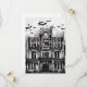 Un ancien manoir hanté avec des chauves-souris volant au-dessus. Ajoutez votre propre texte pour la personnalisation.