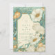 Un design mariage Art Nouveau avec des pavots blancs audacieux, des vignes turquoises et des accents dorés. Le cadre botanique complexe ajoute une touche vintage et artistique, idéale pour les couples à la recherche d'un thème mariage floral romantique mais dramatique.