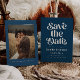 Rétro et élégant enregistrer la carte de date avec la police boho qui dit "enregistrer la date" en bleu marine. Vous pouvez ajouter une photo au dos.