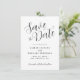 Classic élégant noir et blanc minimaliste design rustique calligraphie script mariage enregistrer la carte de date. ++++++++++++++++ Convient pour toute saison et thème. ++++++++++++ Facile à personnaliser avec votre texte !