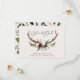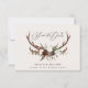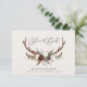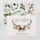 Carte de mariage rustique avec feuillage, fleurs et bois de cerf pour annoncer la date de votre mariage. Avec de beaux feuillages aquarelle, fleurs blanches, rondelle de bois et écriture manuscrite. Cette invitation moderne est sûre de définir le style de votre fête à venir.