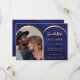 Une photo Enregistrez la carte de date pour votre mariage Sur le devant : Ajoutez votre propre photo de taille verticale. Cadre de l'arc photo en or Faux. Un arrière - plan bleu marine, texte doré. La couleur bleue est inégale. Personnalisez et ajoutez vos noms et la date.