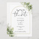 Cette élégante arche en or feuille de verdure botanique sauver la date invitation peut être personnalisée avec vos informations en typographie chic avec votre site mariage code QR et des détails sur l'inverse. Conçu par Thisisnotme©