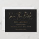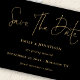 Classy Black Gold Script QR Code Mariage. Disponible numériquement et imprimé. Une élégance simple avec Save The Date dans un script moderne. Le reste du texte que vous pouvez facilement personnaliser. Montré ici en or sur le noir mais le texte et les couleurs arrière - plans peuvent être changés si vous le souhaitez via l'option customiser plus loin. Ajoutez votre code QR à votre site Web mariage au verso ou supprimez l'exemple de code si cela n'est pas nécessaire.