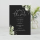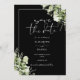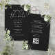 Cette élégante invitation florale à la verdure en noir et blanc peut être personnalisée avec vos informations dans la typographie chic avec votre code QR de site mariage et les détails sur l'inverse. Conçu par Thisisnotme©