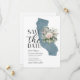 Élégant faire-part de mariage de destination en Californie avec une illustration de l'État fleuri dusty blue.