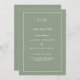 Faire-part de mariage simple avec un design moderne et élégant avec votre monogramme à deux lettres en haut et vos détails entourés d'une fine bordure. Les polices et les couleurs arrière - plans peuvent être changées en n'importe quelle couleur en cliquant sur le bouton "personnaliser". Un design chic et design qui conviendra à un couple minimaliste.