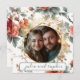 Créez une célébration mémorable avec nos Cartes de Mariage de Noël Chic Enregistrer la Date. Ce design élégant présente une photo romantique du couple heureux avec un cadre doré pour accentuer le design floral vert et rouge sur le thème de Noël. ,Parfait pour votre annonce de mariage, cette carte élégante de Save the Date simplifie votre planification. Rendez votre célébration de mariage de Noël inoubliable avec une touche de sophistication et de style.