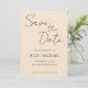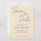 Cartes de faire-part de mariage de style simple qui présentent un script stylisé noir sur un fond tendance de couleur champagne. Modifiez et remplacez les noms, la date et le lieu par les vôtres. Sélectionnez la taille de votre invitation et le style de papier.