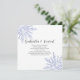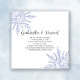 Annoncez vos prochaines noces hivernales de décembre, janvier ou février avec le thème du pays des merveilles hivernal avec l'annonce festive à retenir Mariage d'hiver flocon de neige bleu sur fond blanc. Des flocons de neige teintés de bleu ornent les coins de cette annonce élégante de mariage hivernal à retenir avec un fond blanc. Disponible sous forme d'invitation imprimée pour envoi postal ou en téléchargement numérique pour un partage facile en ligne.